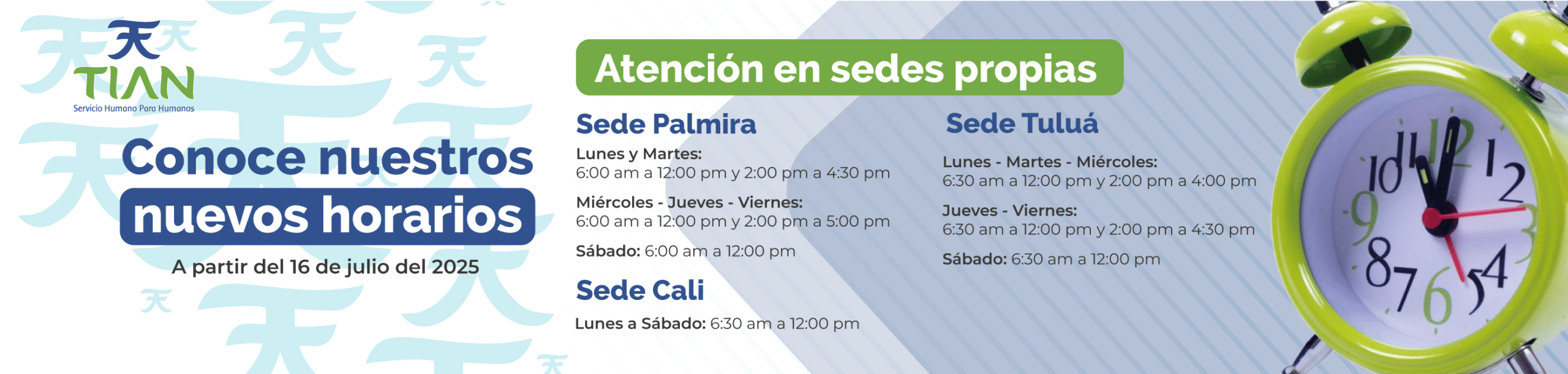 Lunes - Martes - Miércoles: 6:30 am a 12:00 pm y 2:00 pm a 4:00 pm